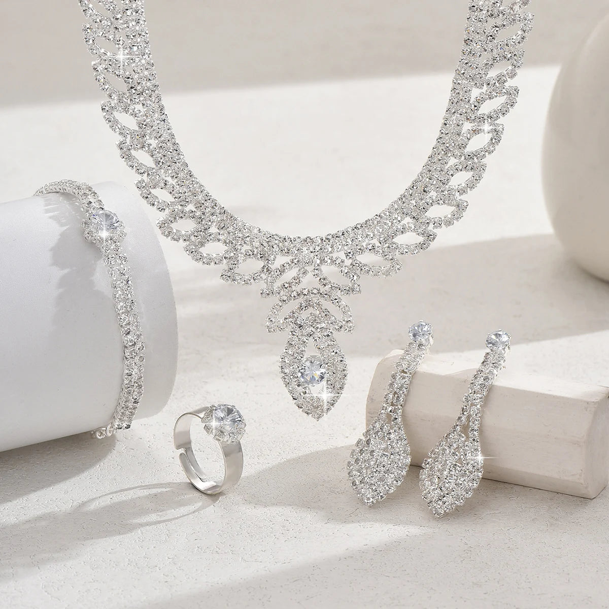 Celebrate special moments with this cute and romantic flower-themed jewelry set. Including a necklace, earrings, ring, and bracelet, all crafted from durable copper, it’s perfect for anniversaries or gifting to someone special. Lightweight and stylish, this set adds a charming touch to any outfit.